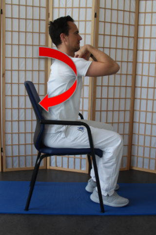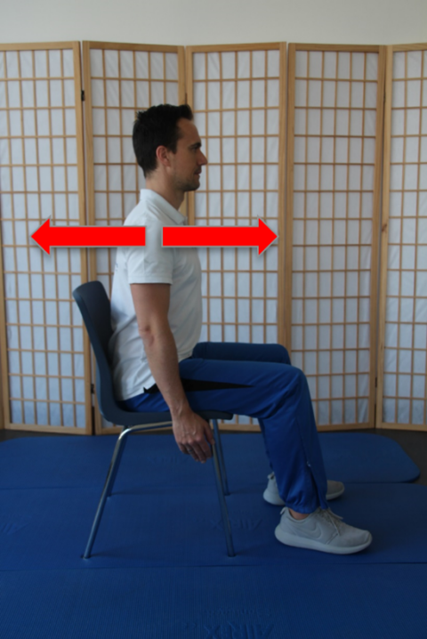 Setzen oder stellen Sie sich aufrecht hin, führen Sie Ihre Schulter abwechselnd vor und zurück. Betonen Sie die Bewegung rückwärts, um die Brustmuskulatur dabei zu dehnen. Wiederholen Sie die Übung 10 – 15 mal.